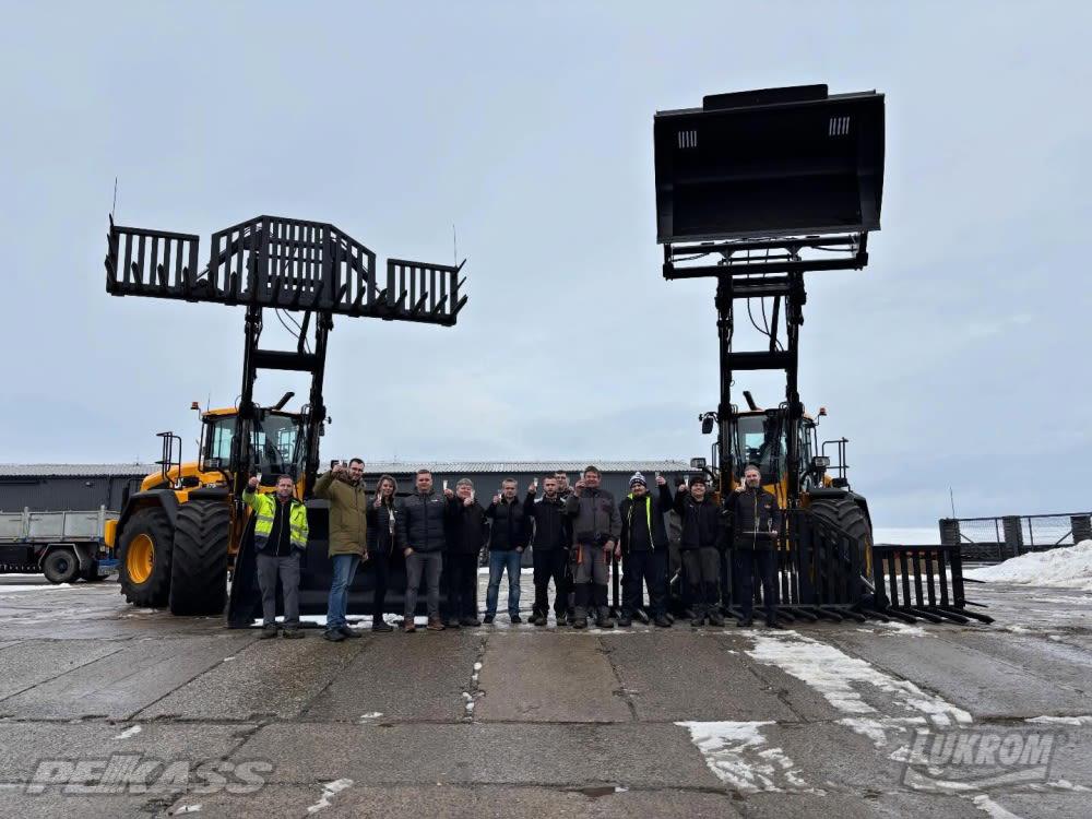 Oba nakladače jsou vybaveny vysokovýklopnou lopatou KAME VM o objemu 5 m3, která umožňuje efektivní nakládku i do vysokokapacitních dopravních prostředků, a dále senážními vidlemi KAME VM se záběrem 5 metrů, určenými pro rychlou a šetrnou manipulaci se senáží a siláží na jámě. Tato kombinace pracovních nástrojů zajišťuje vysokou univerzálnost strojů při každodenním nasazení v živočišné i rostlinné výrobě.